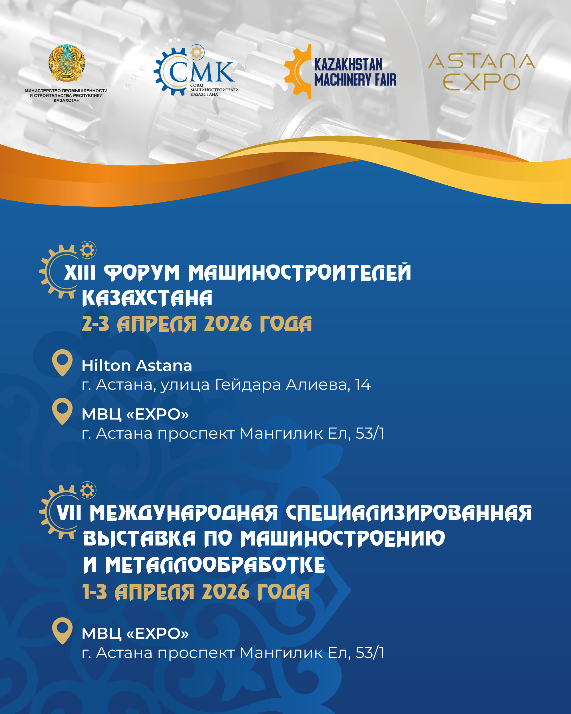 Главное отраслевое событие года — XIII Форум машиностроителей Казахстана — пройдёт 2–3 апреля 2026 года в Астане.